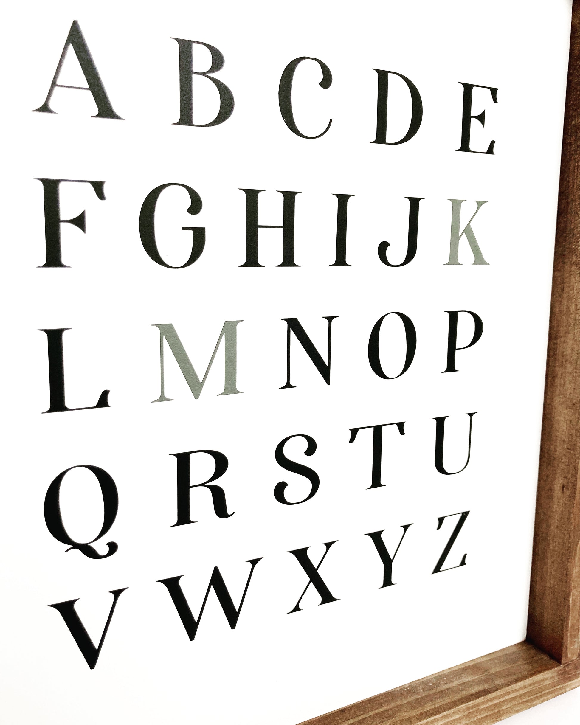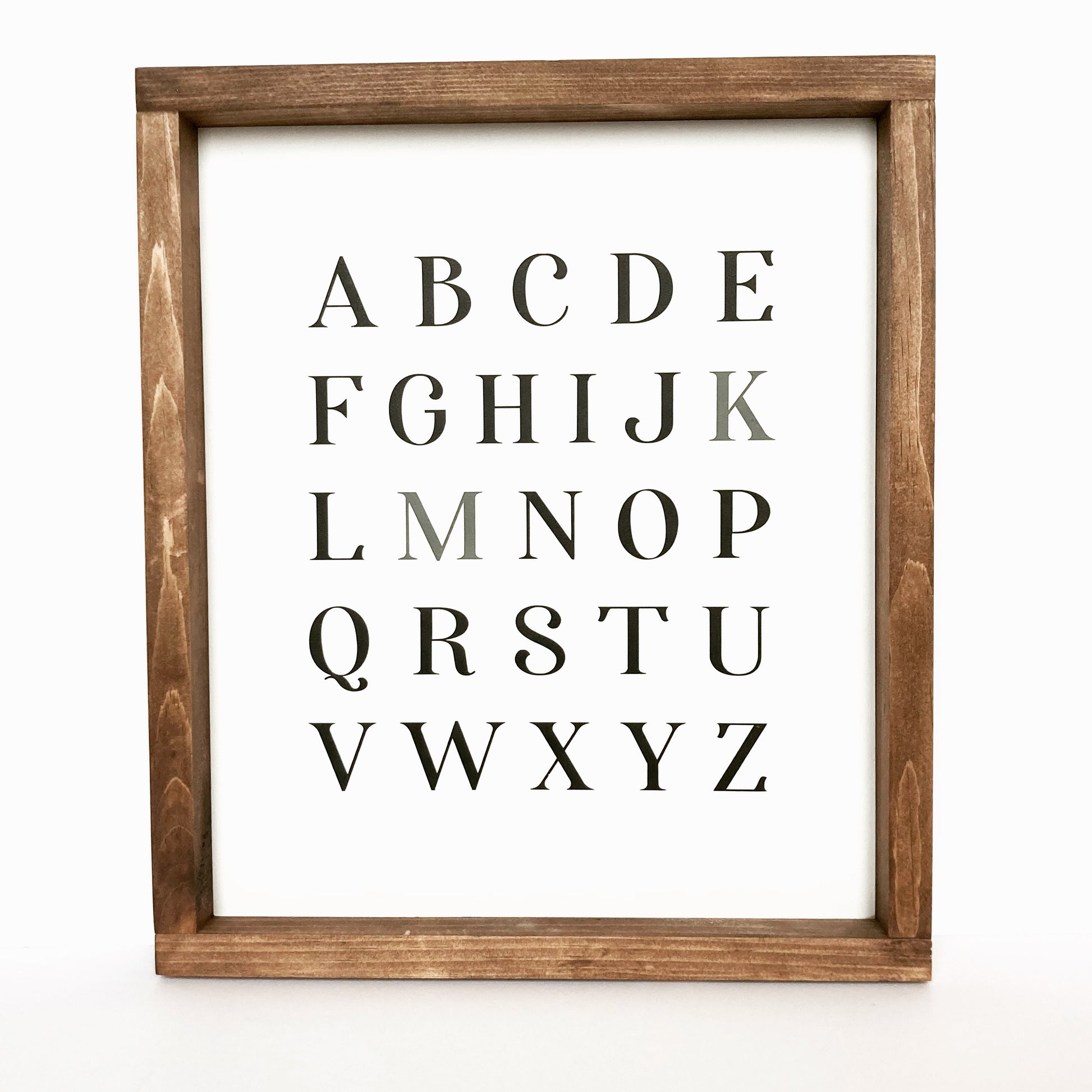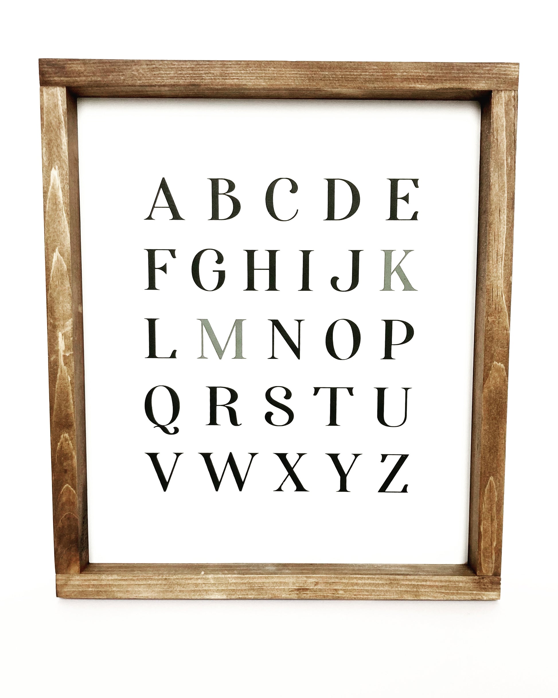 Customize this ABC playroom sign by highlighting the first initial of your child/children's names with an accent color. Help your child begin to recognize the letters in the alphabet by displaying this sign in their playroom or bedroom!