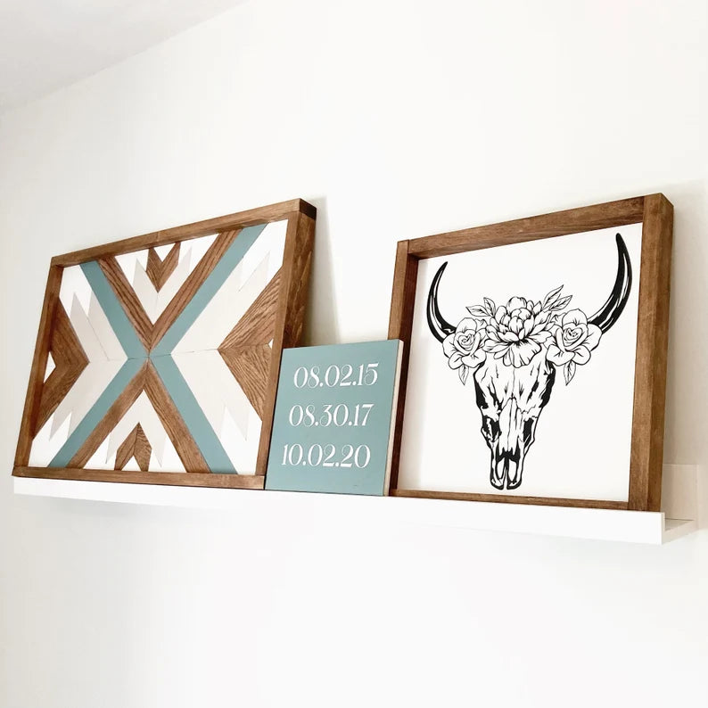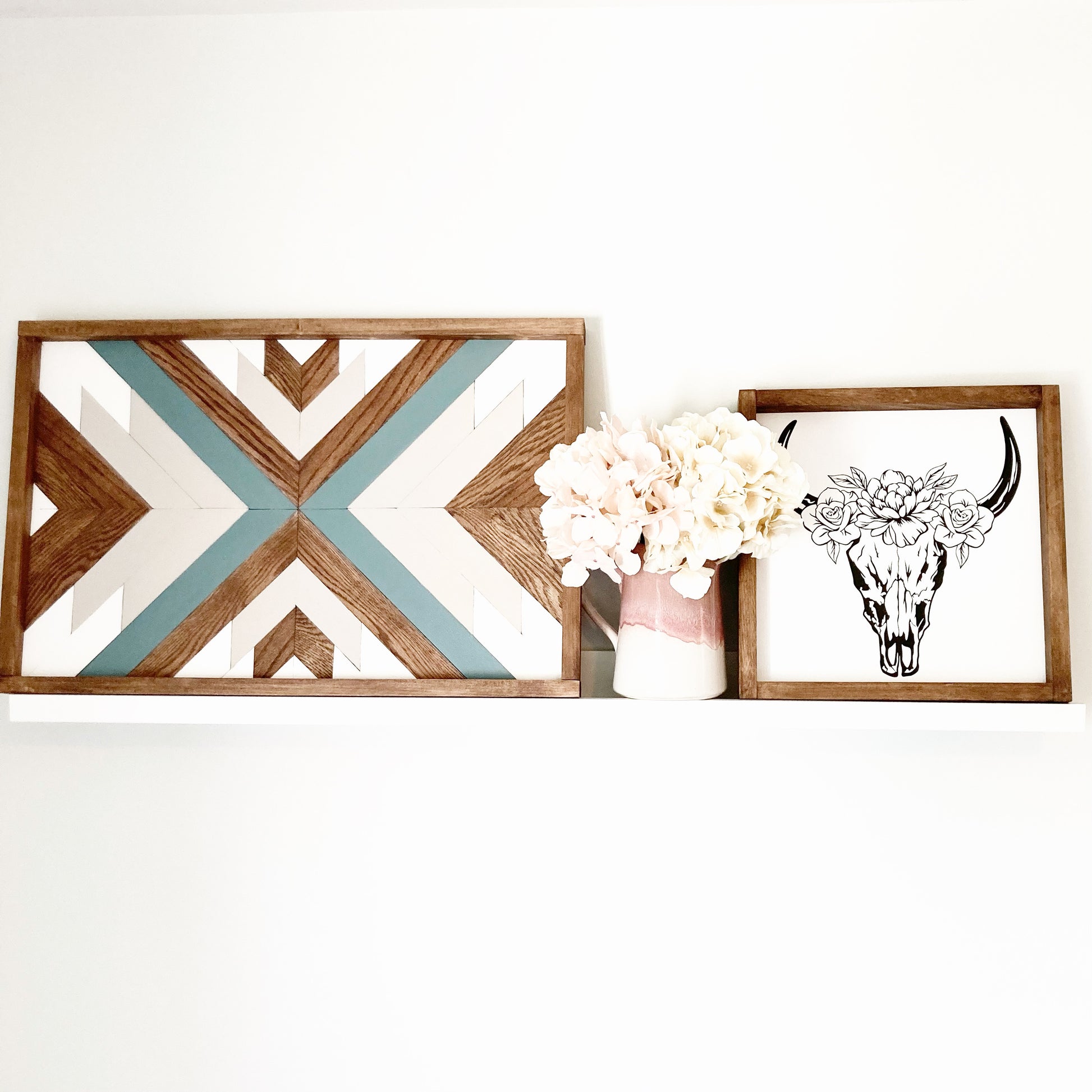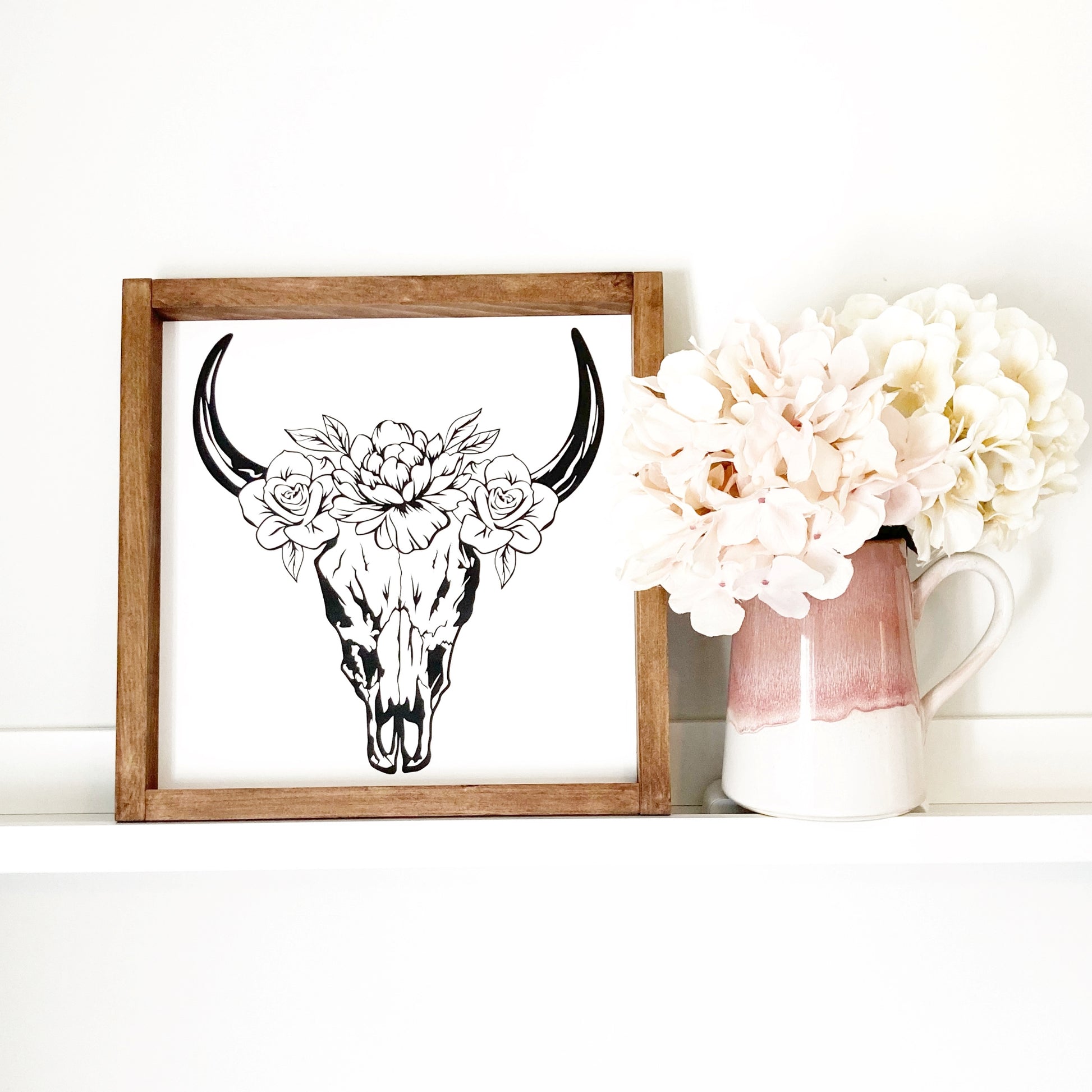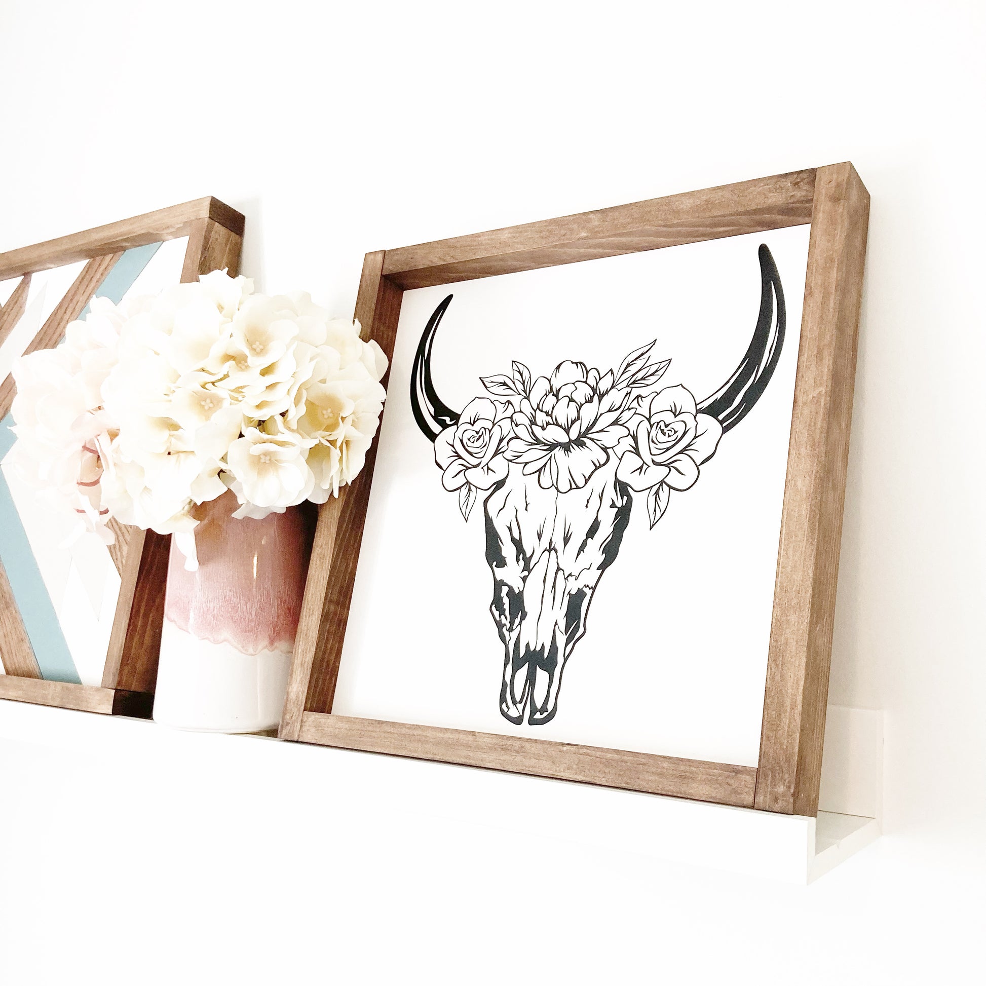 This beautiful floral bull skull wood sign is the perfect mix of boho and modern farmhouse décor style. It can be displayed on your wall as well as used as a shelf sitter.