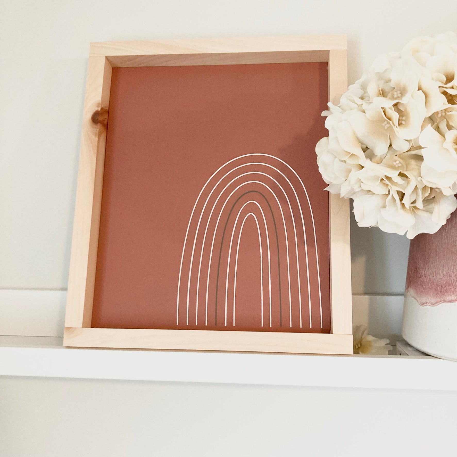 Our wood signs are handmade out of sanded 1/2 inch premium birch plywood and painted. The design is painted. The frame is cut in our shop from 1x2 select pine wood and sanded to ensure a smooth, beautiful finish with your choice of stain. The back of your sign will be sanded and left clean. We finish off your wood sign with a clear coat on both the frame and the sign itself to add a layer of extra protection.