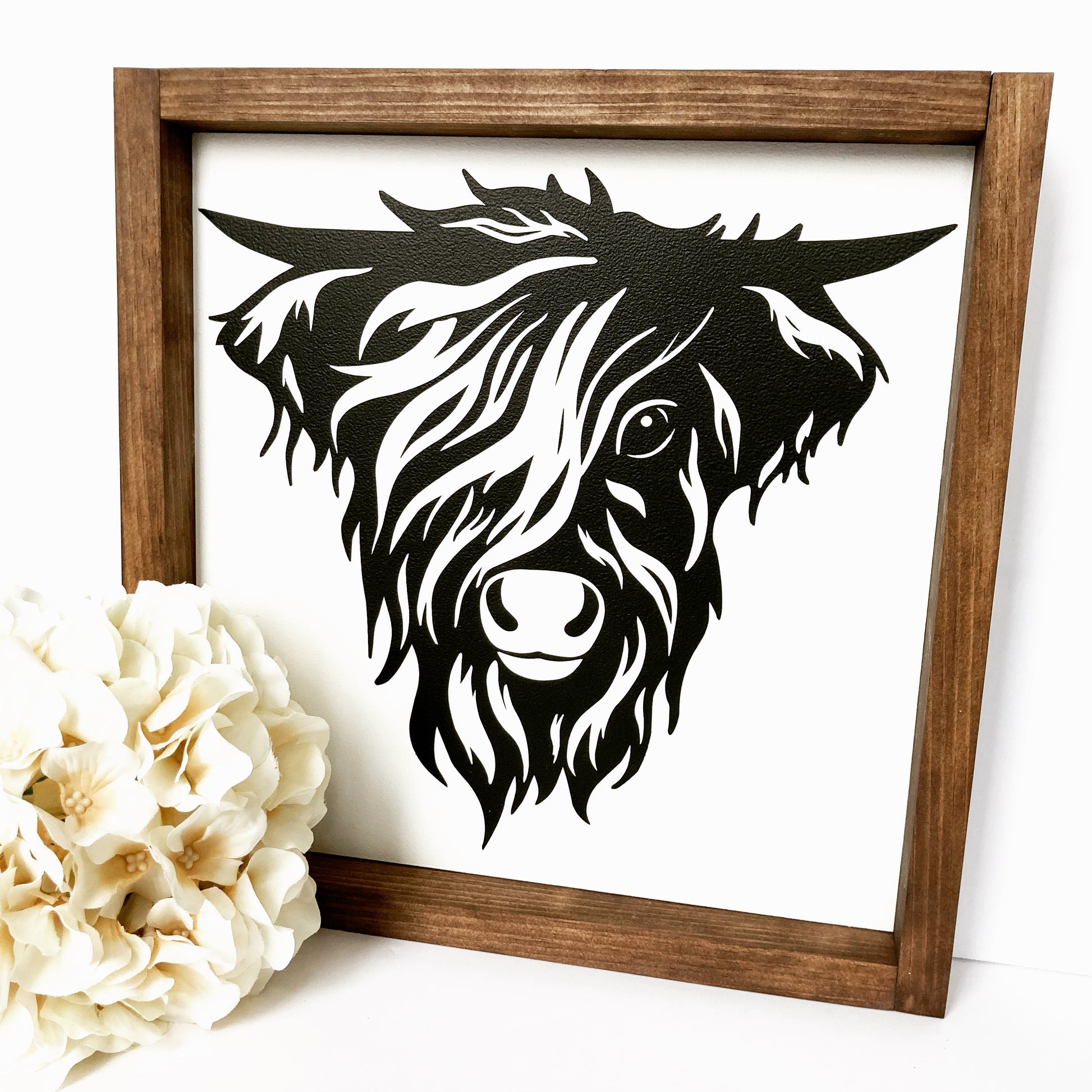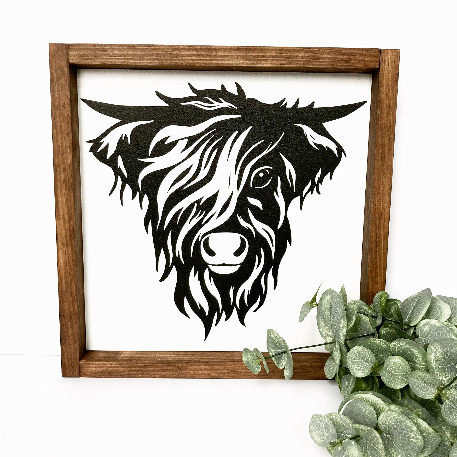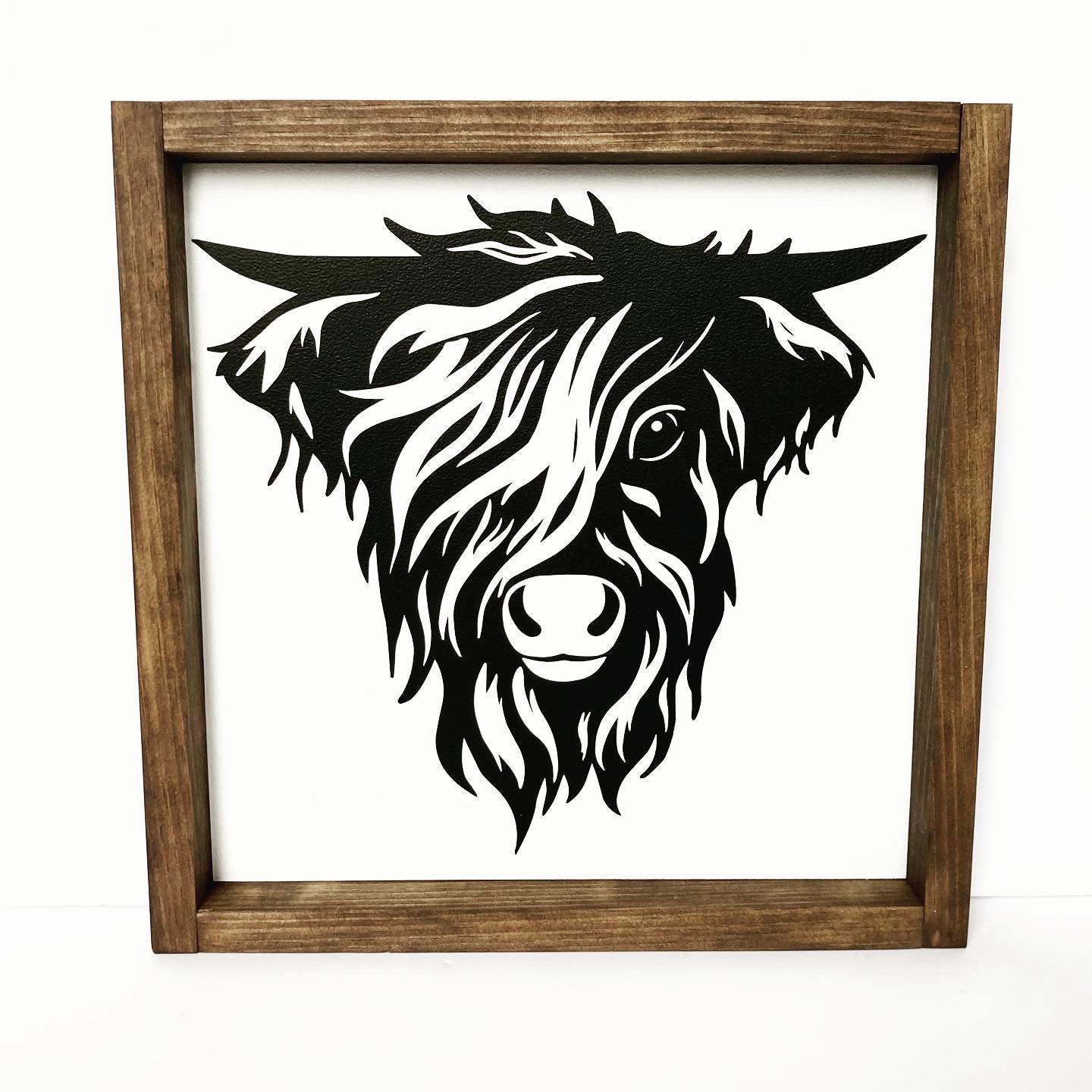 Highland Cow framed wood sign for the cow lover, farmer or lover of boho farmhouse style décor. This wall hanging is a statement piece in any room in your home, and looks absolutely adorable in a nursery!