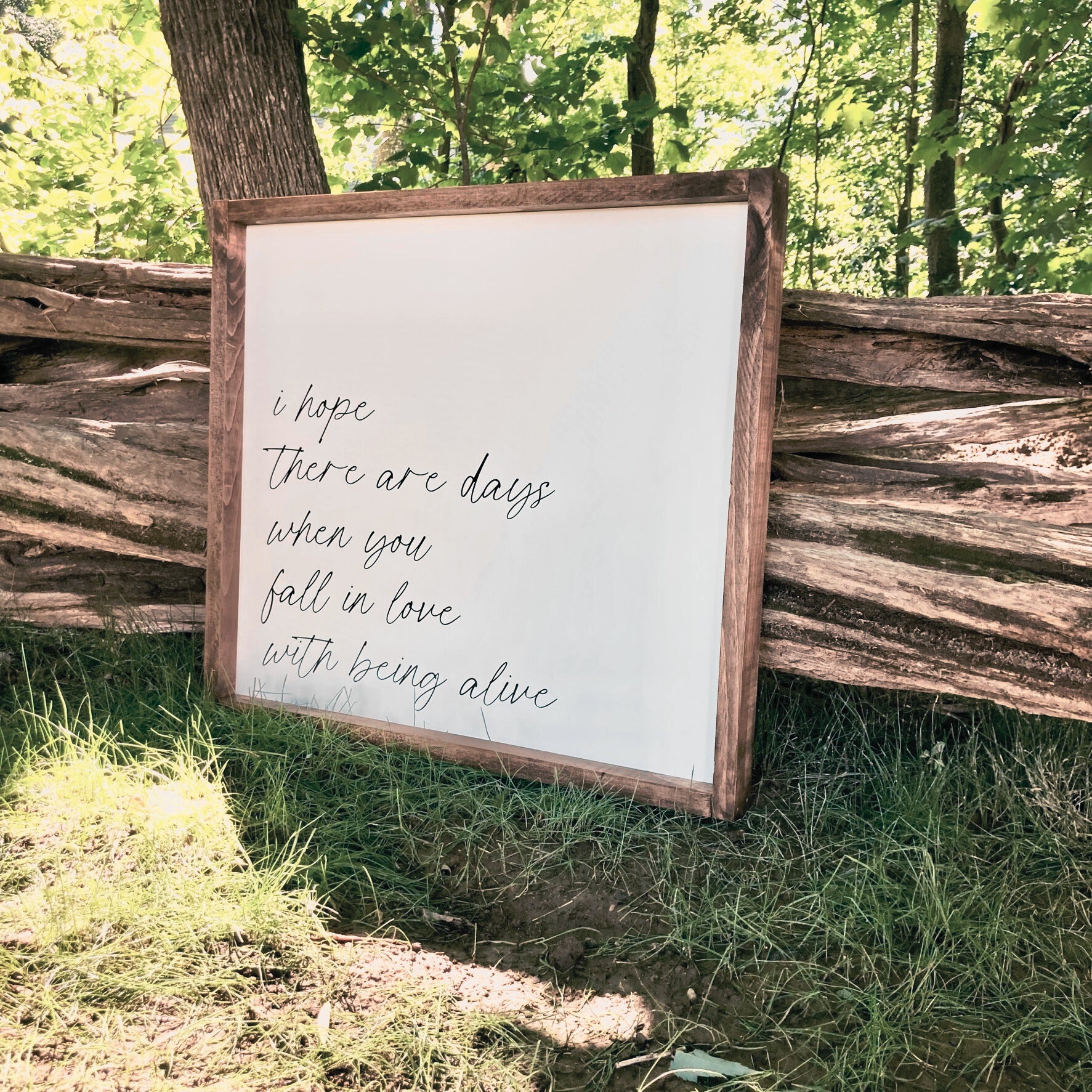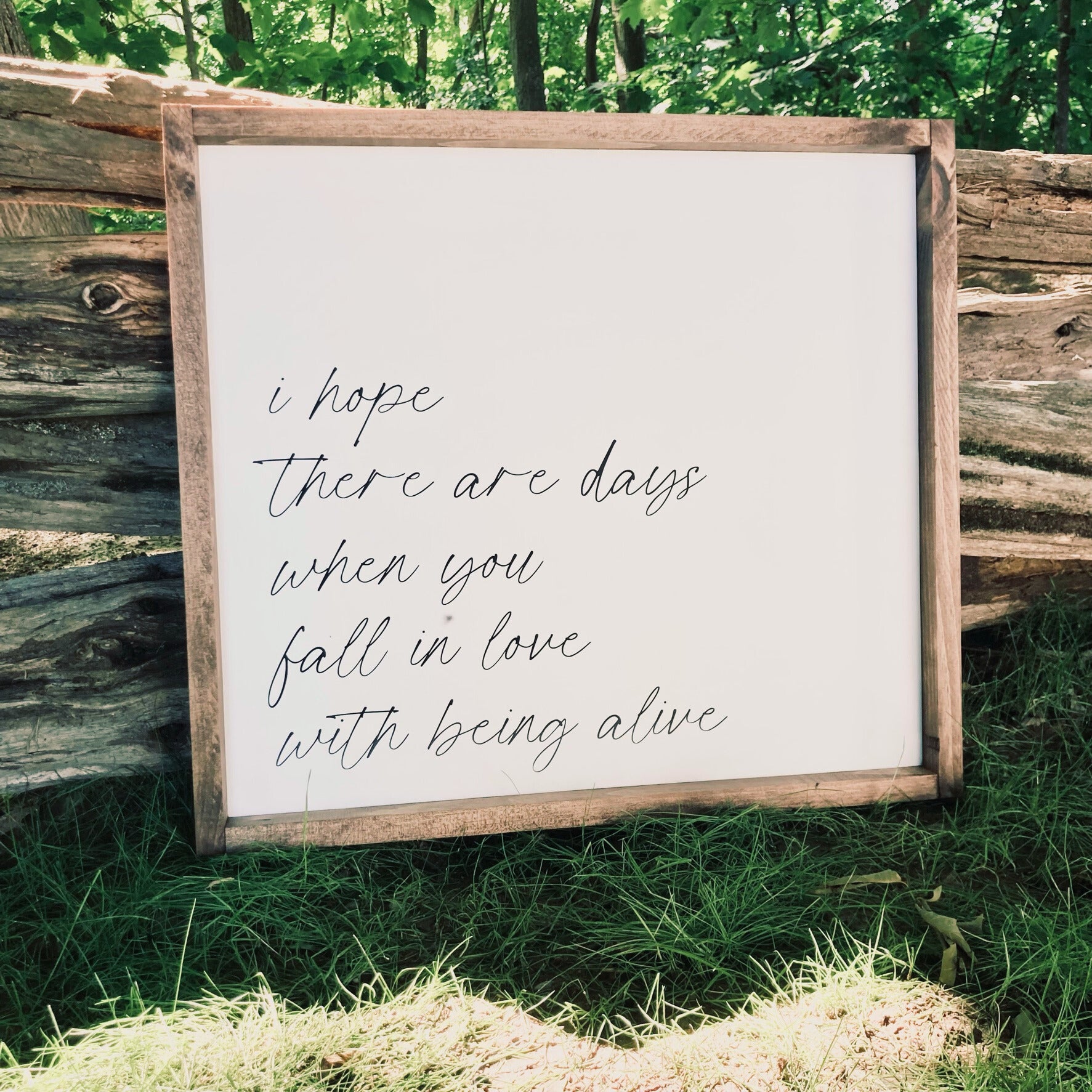 I Hope There Are Days When You Fall In Love With Being Alive Wood Sign