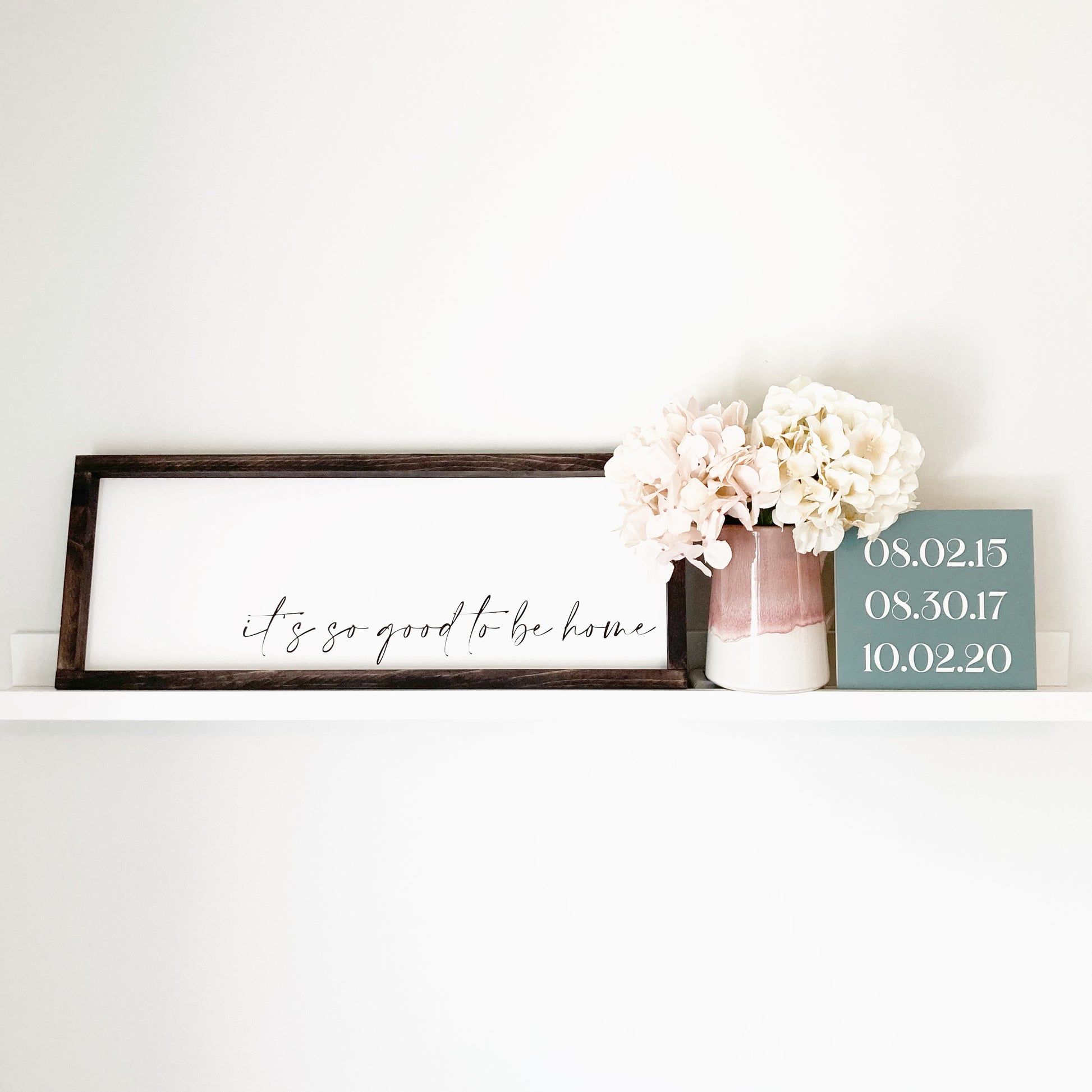 This 24 inch x 8 inch wood sign can be displayed beautifully on a shelf (as shown in photo's) in your entryway, living room or the master bedroom. It can also be displayed on your wall among your family photo gallery. Give this sign as a housewarming gift to the new home owners in your life and add a cozy welcome to their home.