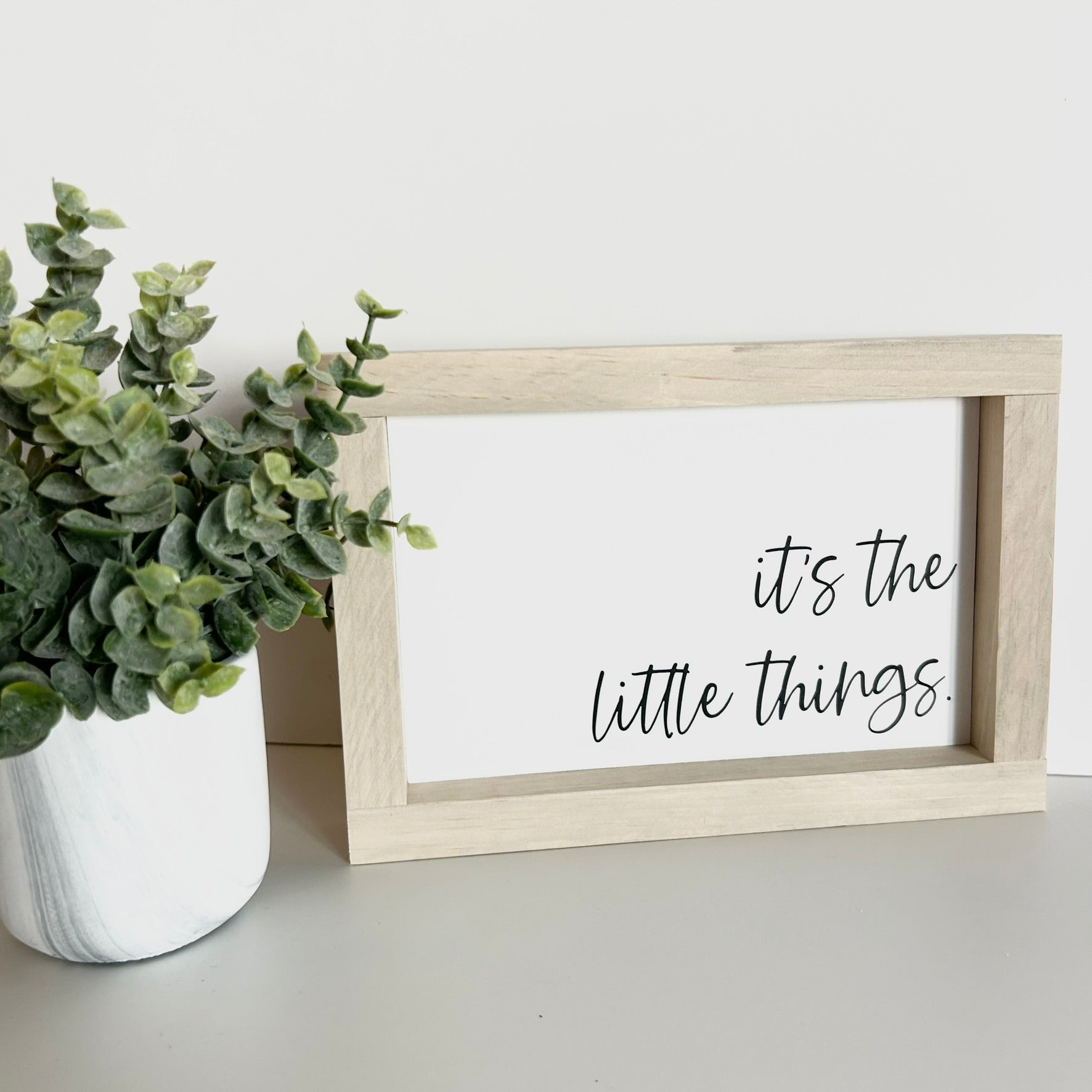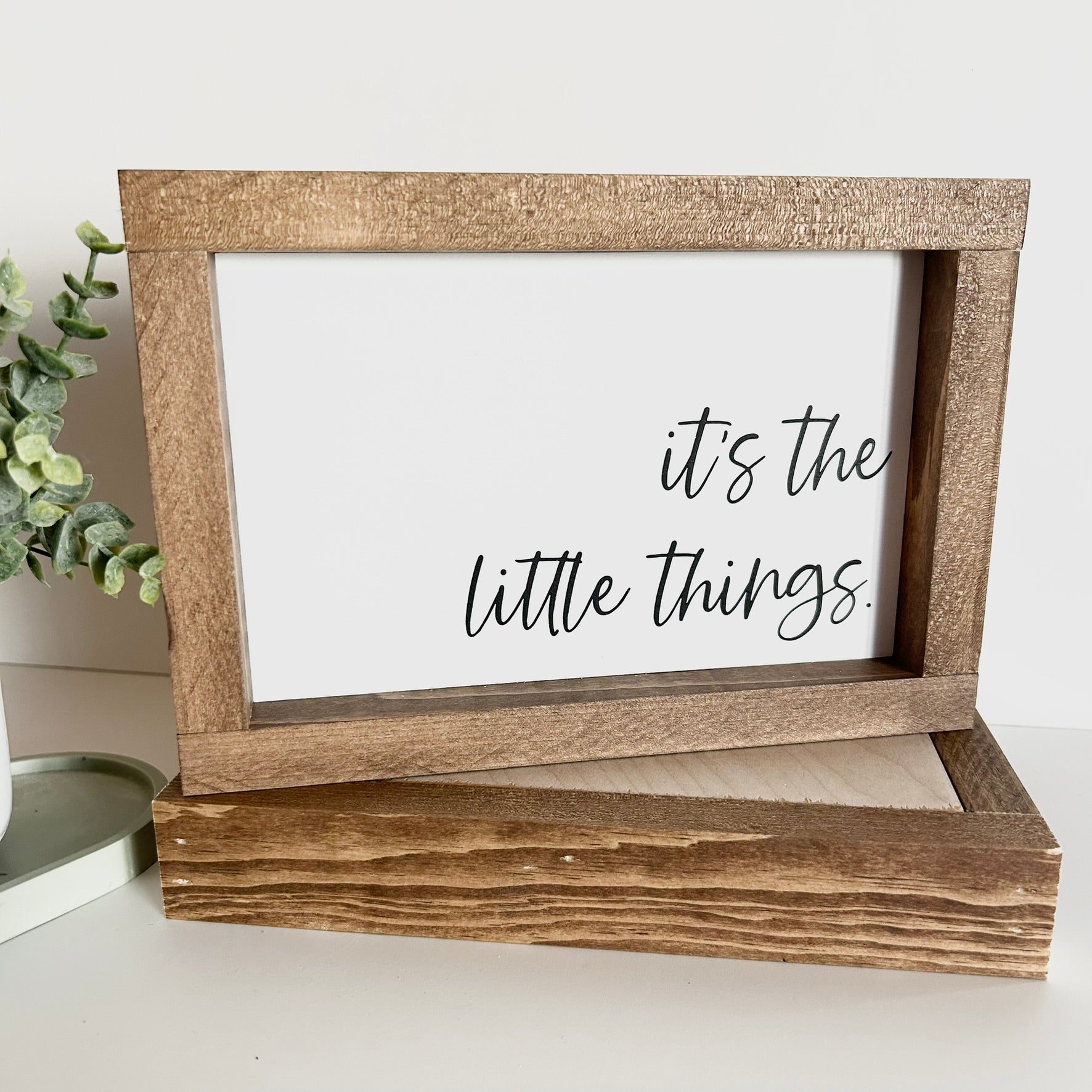 This "It's the Little Things" shelf sign offers a subtle yet meaningful reminder to appreciate everyday moments. Perfect for display on shelves, desks, and counters.