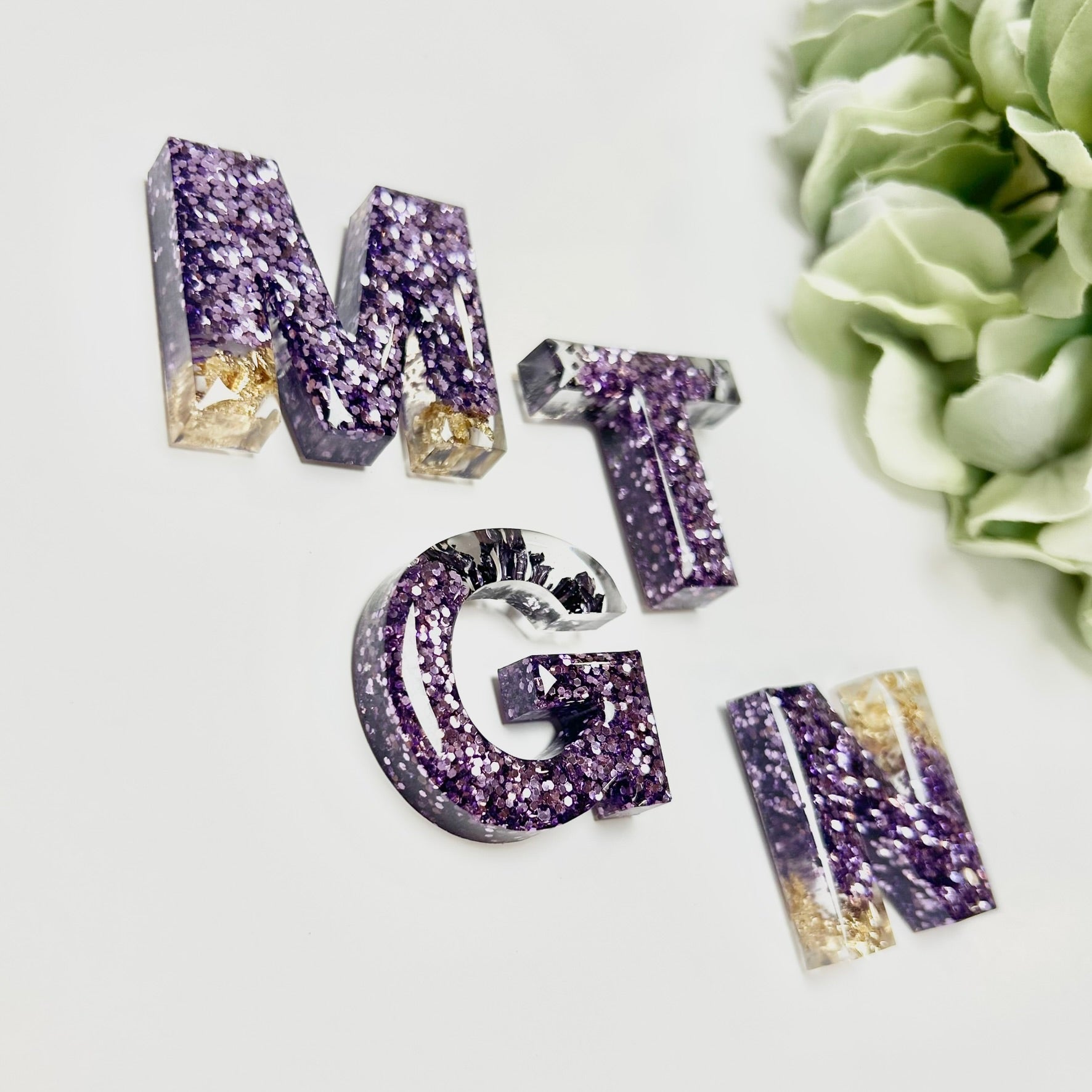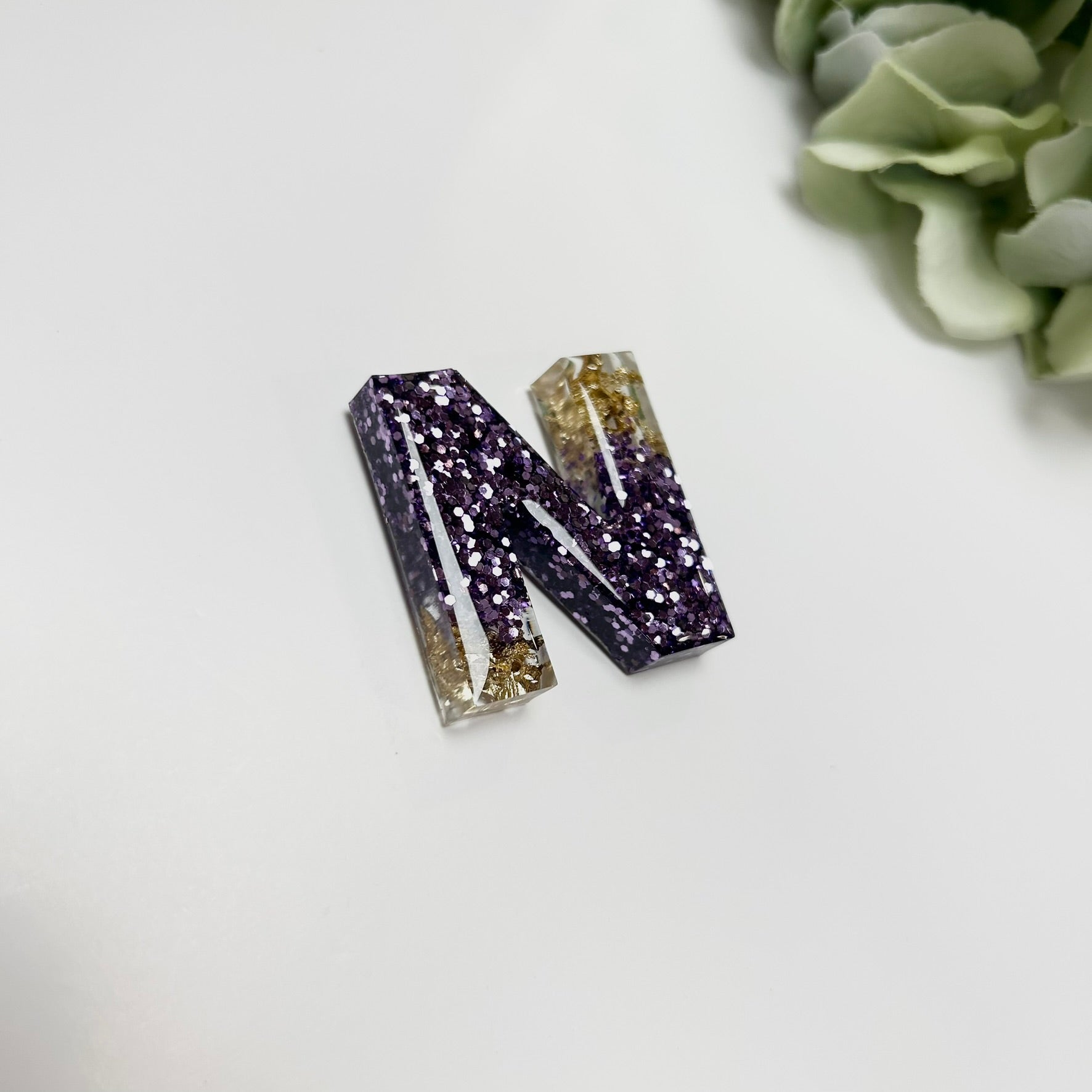 Resin Letter Magnet "N" in Lavender Glitter and Gold Flakes